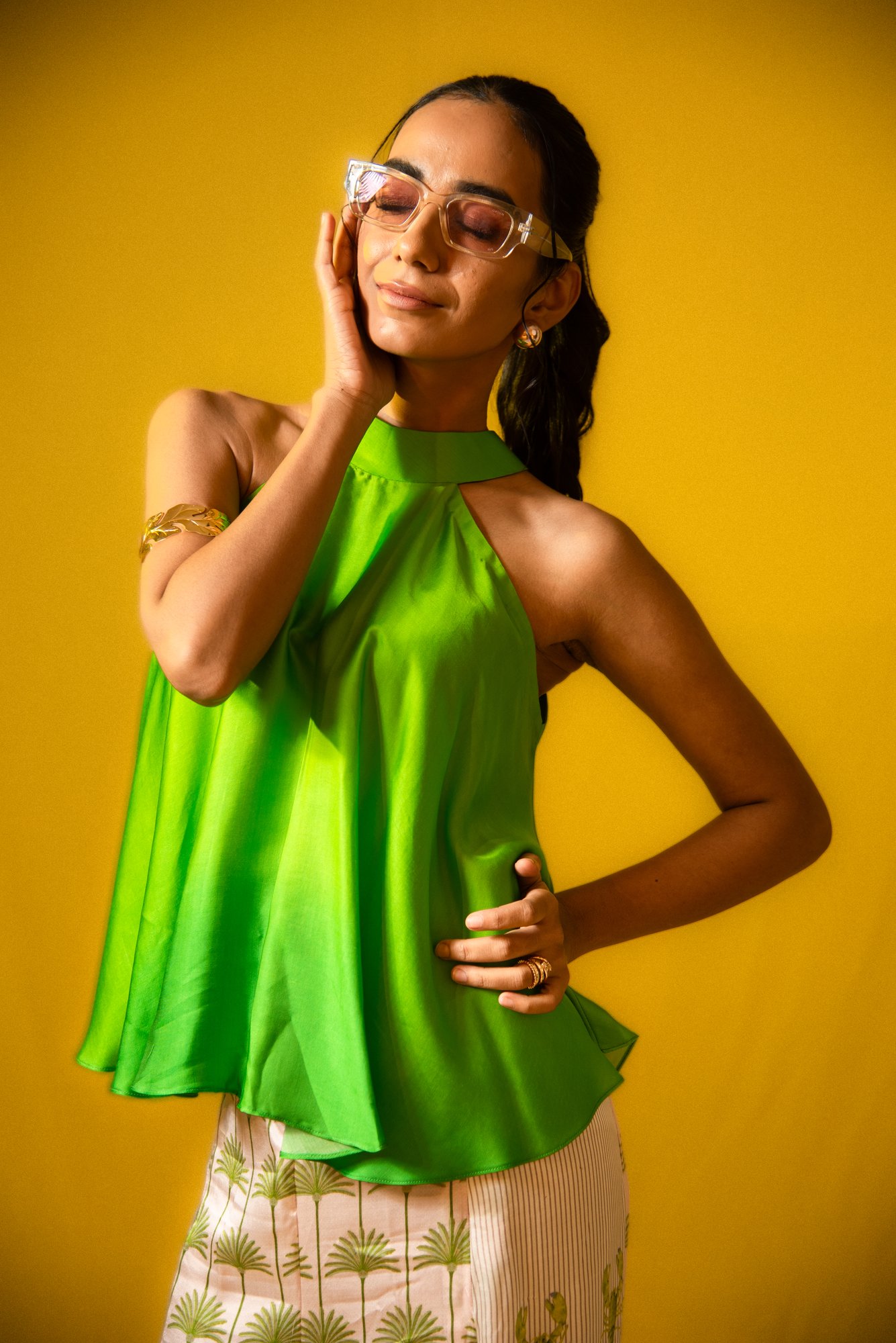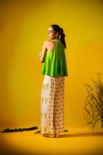 Indulge in the opulent allure of this ombré green organza flared top set. Crafted with exquisite details and rich fabrics, it’s the epitome of grace and style.