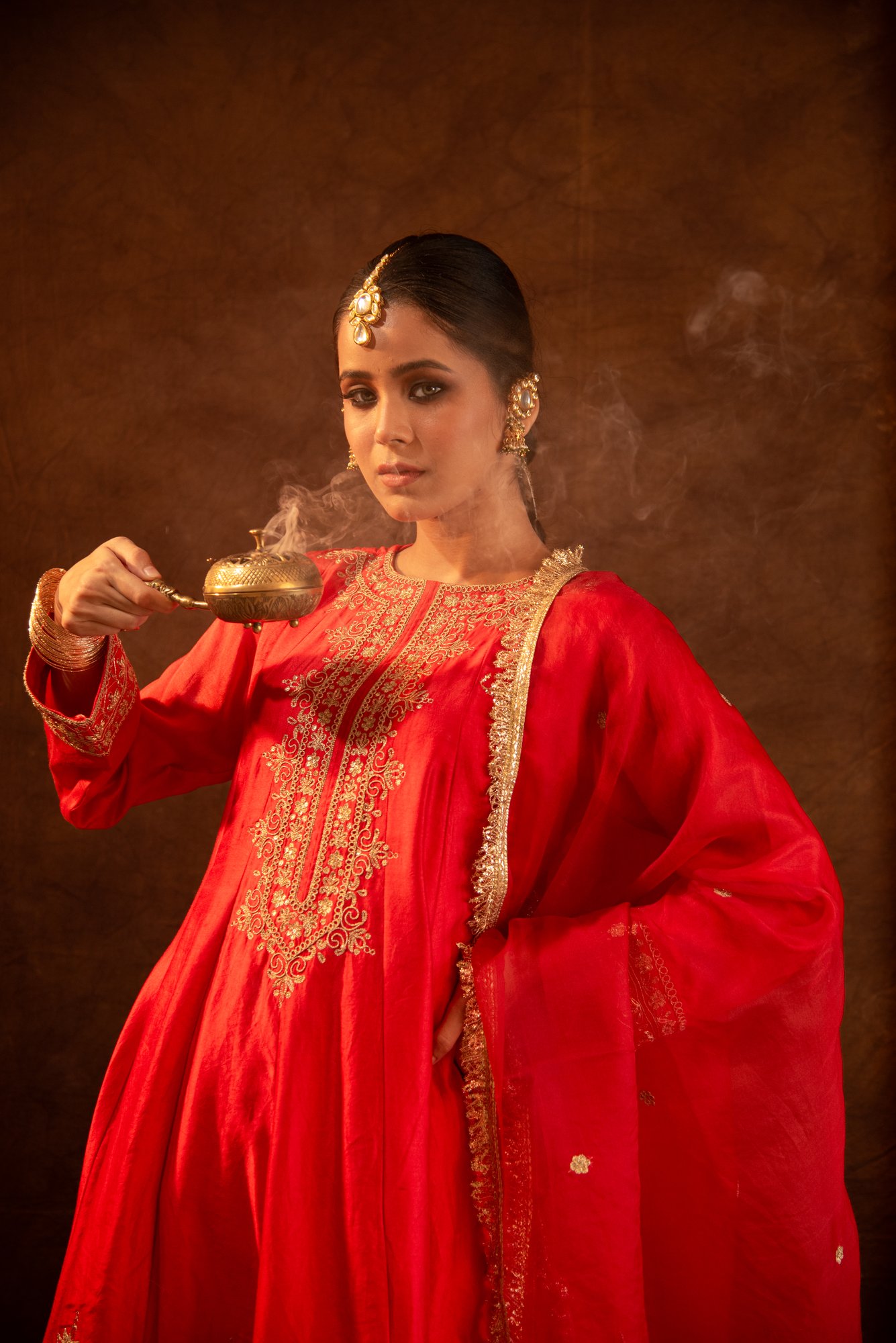 Red Silk Dori-Marodi Kurta Set