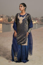 Blue Banarasi Cotton Silk Stripe Kurta Set